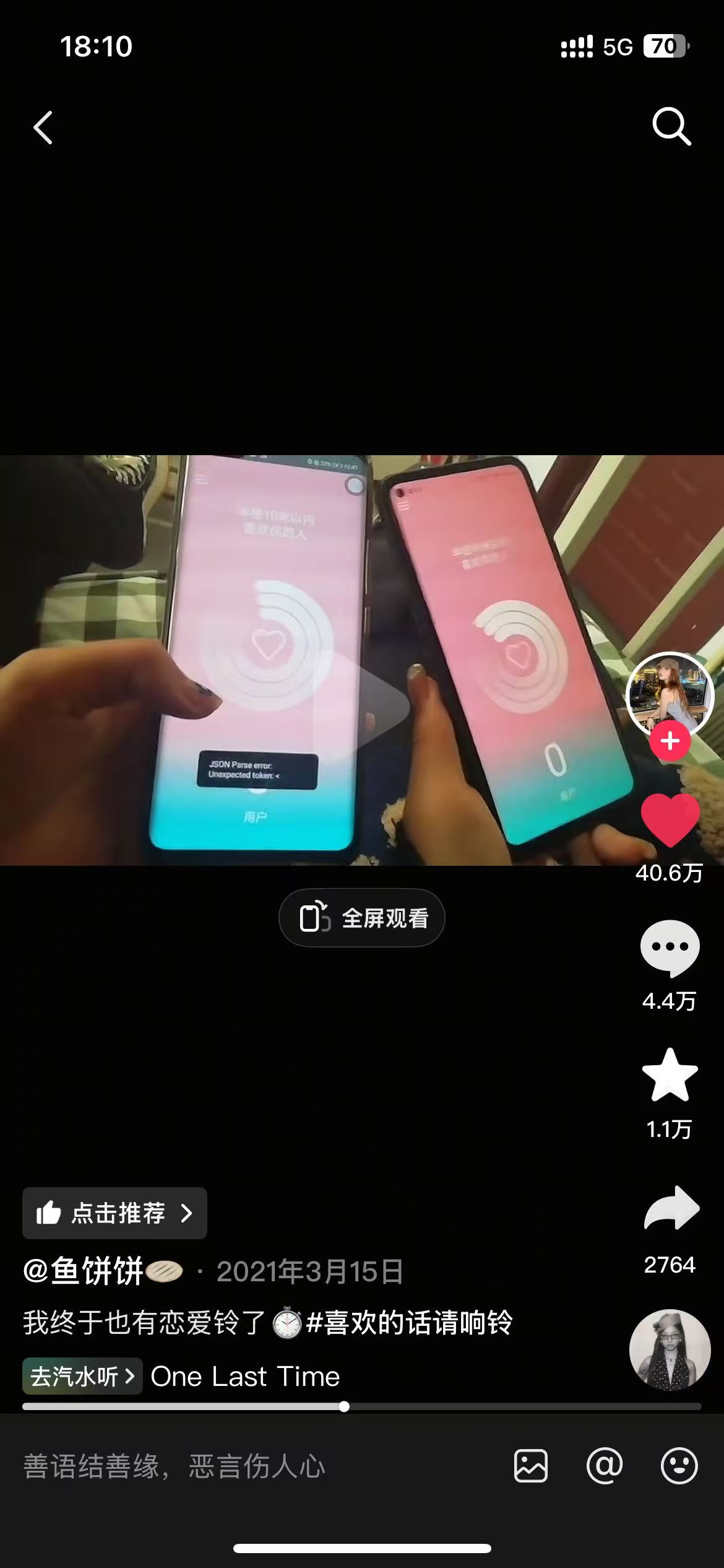 「Joalarm 恋爱铃」在没有上架应用商店的情况下,一天新增用户达到了 6 万以上!因为有一个用户,玩了我们的应用,发了抖音,火了,才有这么多人注册。2021 年的视频,长草了。
